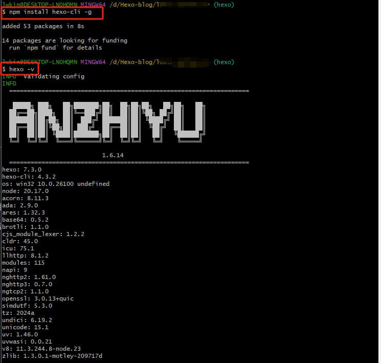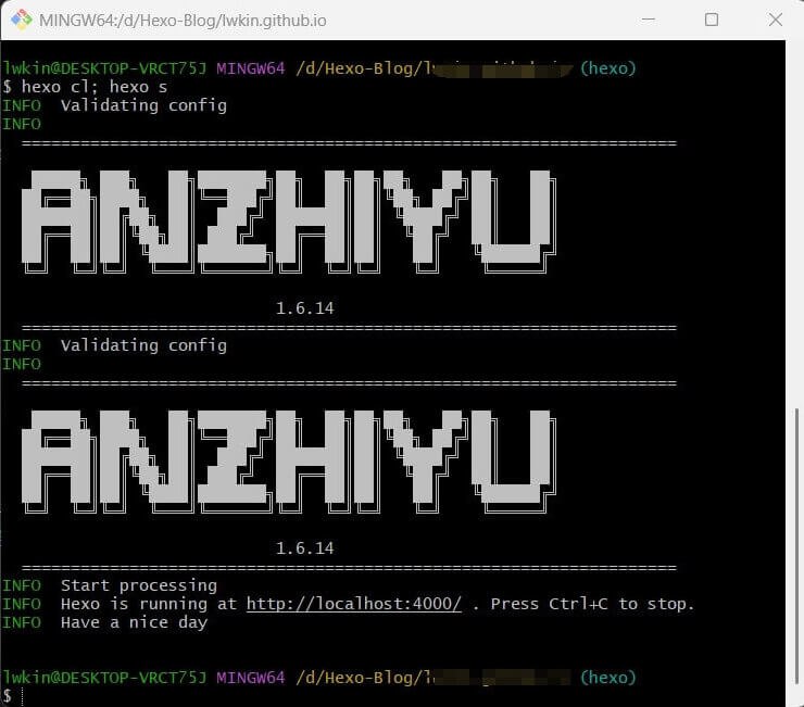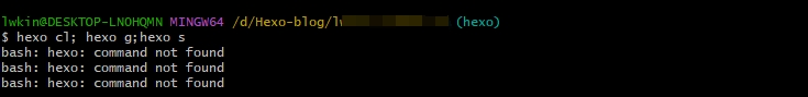 Git Bash中通过命令hexo cl; hexo g;hexo s,即可在本地开启同步下来的博客静态页面,并通过 http://localhost:4000/ 访问。如果此环节通过命令hexo cl; hexo g;hexo s出现以下错误:请通过此命令npm install hexo-cli -g重新全局安装Hexo,然后在通过命令hexo -v验证安装最后在通过命令hexo cl; hexo g;hexo s,即可成功在本地开启同步下来的博客静态页面,并通过 http://localhost:4000/ 访问了。